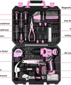 Drill Set: Tool Set with 8V Pink Cordless Drill, Home Tool Kit with Drill, Hand Tool Kits for Women 126 Piece