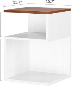 Tokyo S Flip Minimalist 3 Tier End Table with Fast Charging Station – USB C Cable Wood Nightstand for Small Spaces with Open Storage Bedside Table for Bedroom (Reverse, Natural w/Charging)