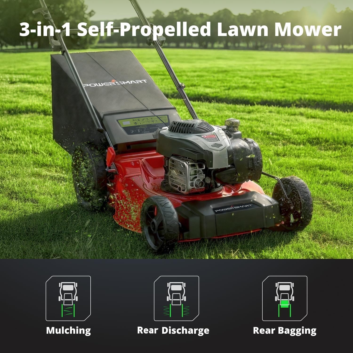21-Inch Gas Lawn Mower with B&S Engine, 3-in-1 (Bag/Mulch/Rear Discharge), Self-Propelled, 6 Cutting Heights, Durable Steel Deck, Rear-Wheel Drive