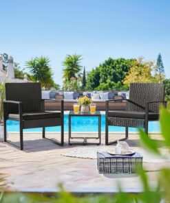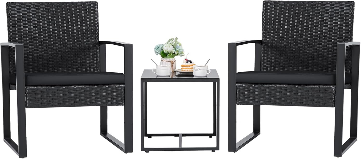 3 Pieces Patio Set Outdoor Wicker Furniture Sets Modern Rattan Chair Conversation Sets with Coffee Table for Yard and Bistro (Black)