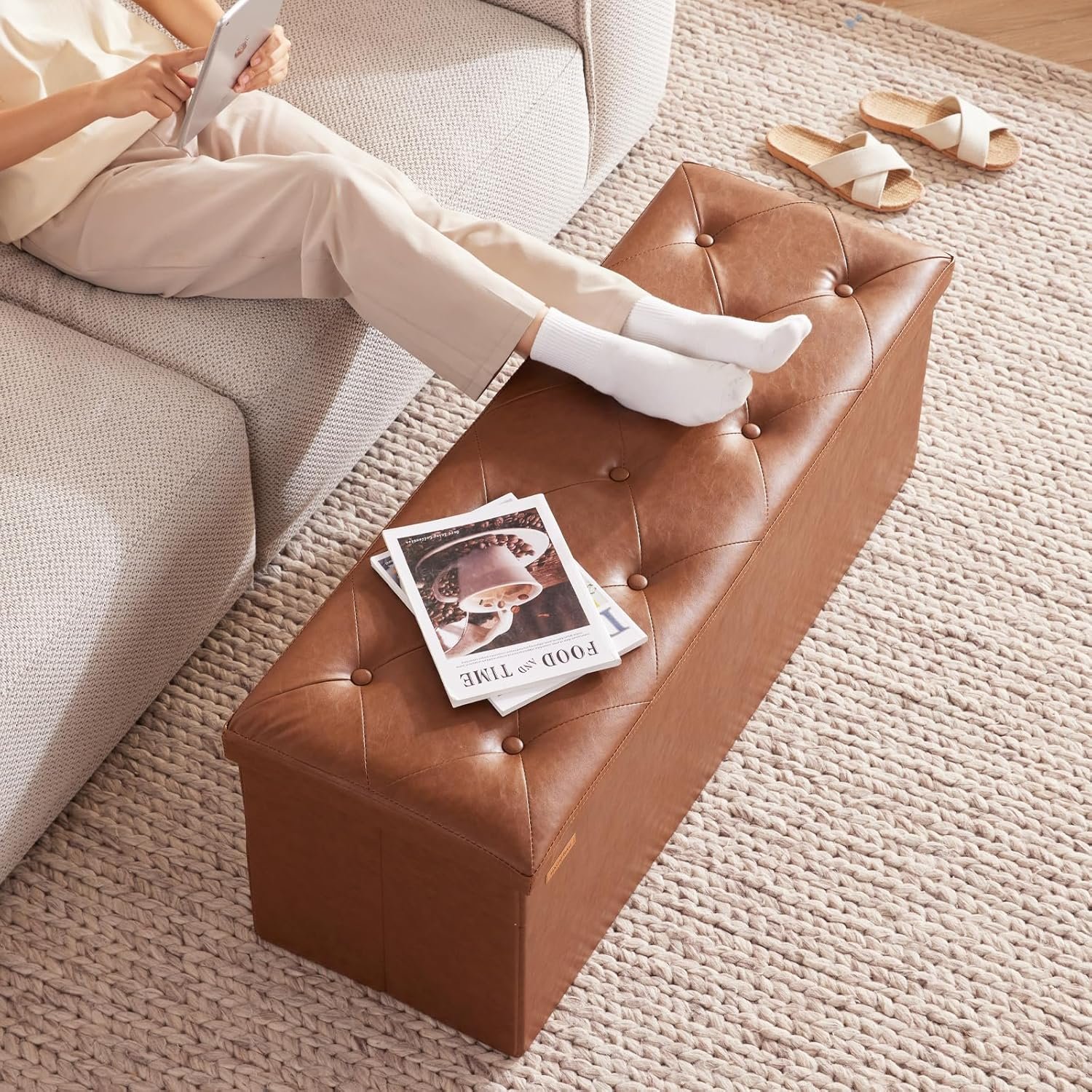 Easy to use: With a simple manual with intuitive graphics, you can quickly set up a storage ottoman in a short time. When not in use, it is easy to fold and takes up less space, making it an ideal storage solution for small spaces.