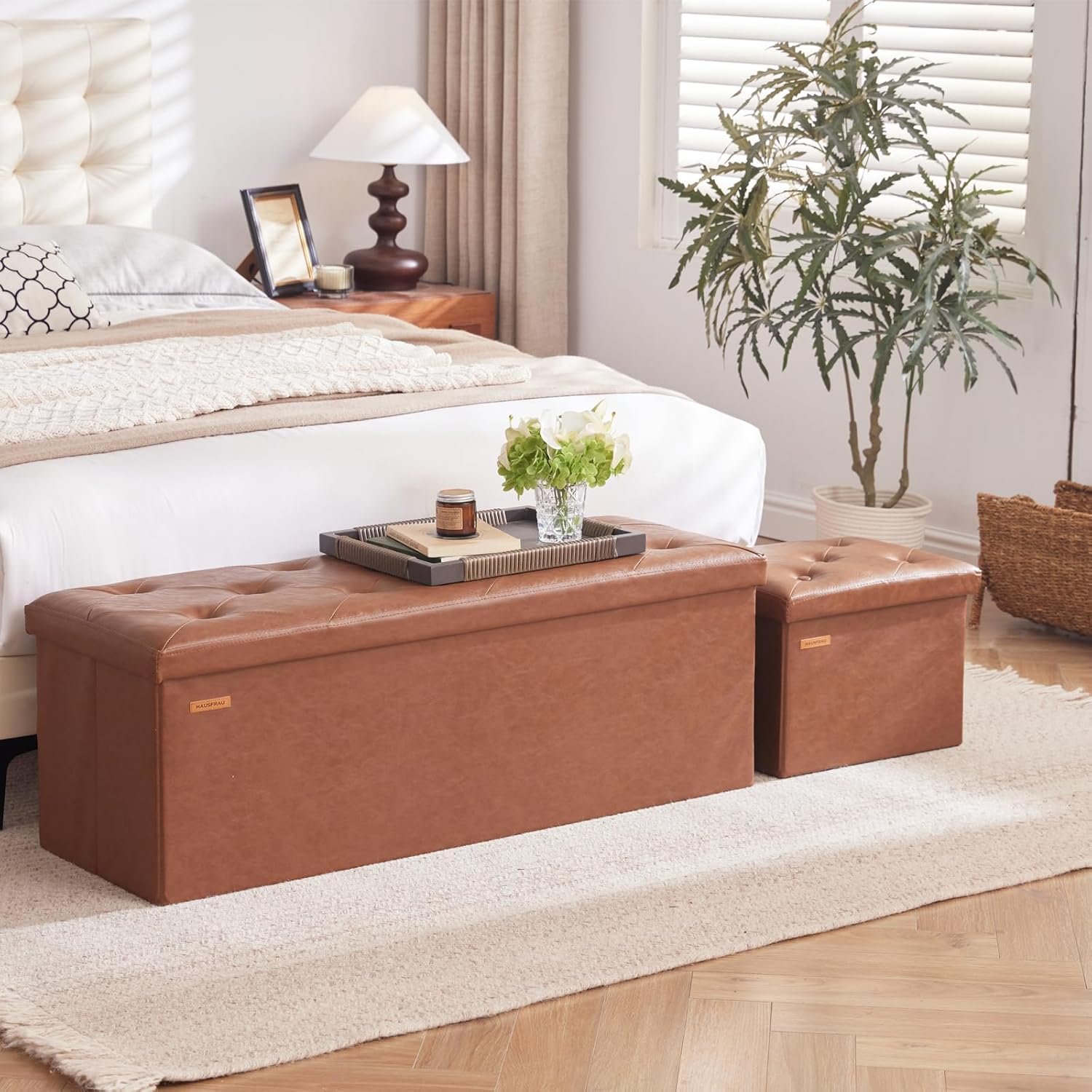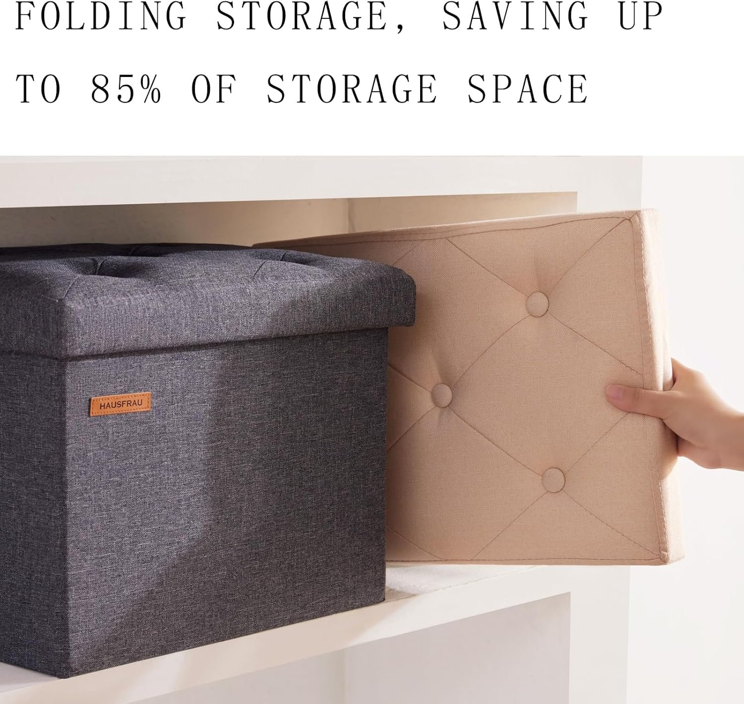 Easy to use: With a simple manual with intuitive graphics, you can quickly set up a storage ottoman in a short time. When not in use, it is easy to fold and takes up less space, making it an ideal storage solution for small spaces.