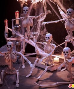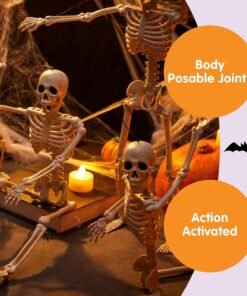 - Super Value Pack. Includes a set of 5 posable skeletons Halloween decorations, allowing you to create a bone-chilling scene that captivates trick-or-treaters.Each small skeletons halloween decorations measures 16 inches, making them an ideal size for enhancing the Halloween spirit in any setting.
