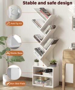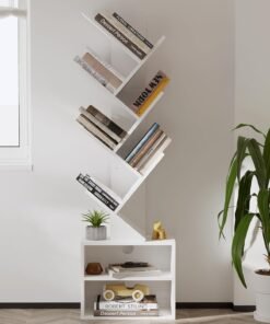 - ??Value Pack??: Small Bookshelf for Small Spaces: Featuring a compact design, the floor standing tree bookshelf optimizes floor space, making it an excellent choice for bedrooms, home offices, corners, hallways, or smaller living rooms. This narrow small bookcase organizer provides ample storage for books, CDs, game cassettes, decorations, and more. Keep your belongings stylishly organized, ensuring a neat and clutter-free space. ( Book shelf dimensions: 47.4″H*14.6″L*”7.9″W )