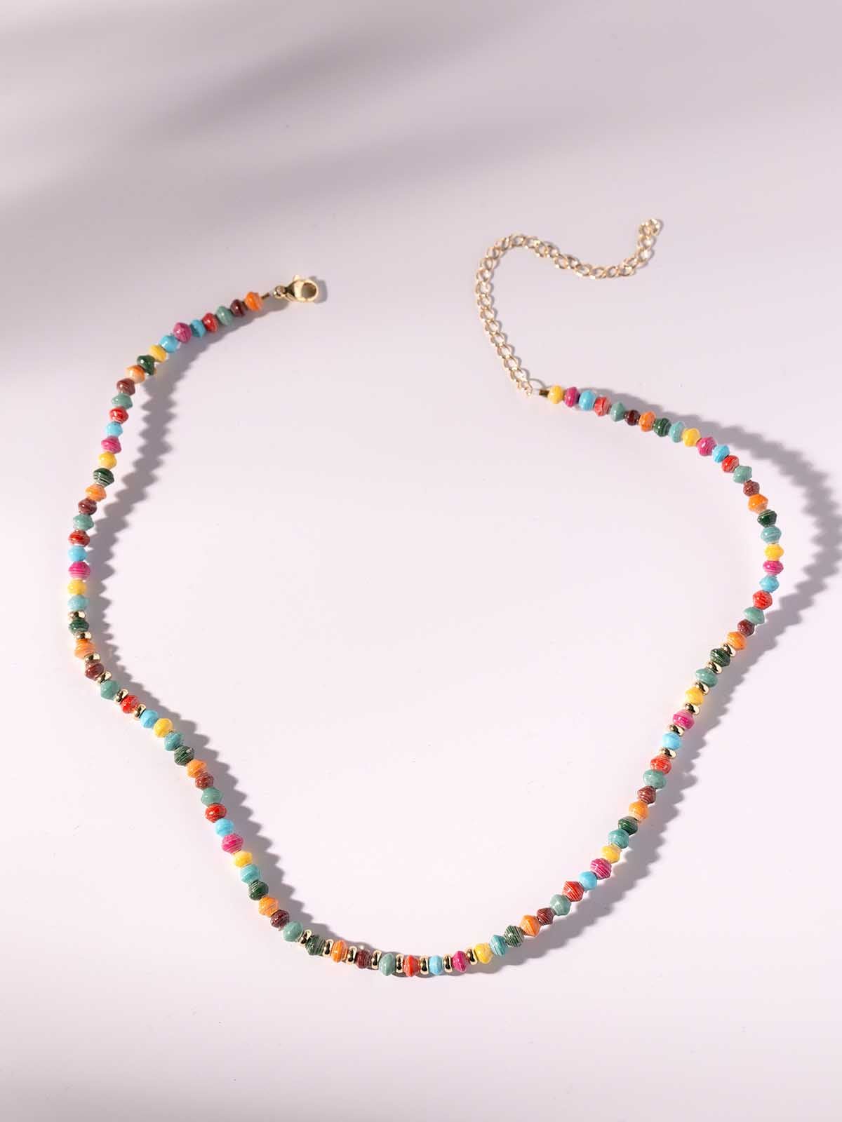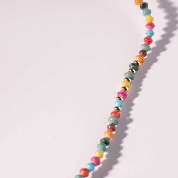 Designed to be your everyday layering essential. the Confetti Mini Bead Layering Necklace offers a lightweight. effortless look with just a hint of shine. Nearly 100 hand-rolled mini paper beads create a delicate silhouette. while tiny gold spacer beads are thoughtfully placed throughout for subtle dimension. Wear it on its own for a minimalist statement or pair it with your favorite necklaces for an easy. stacked style.