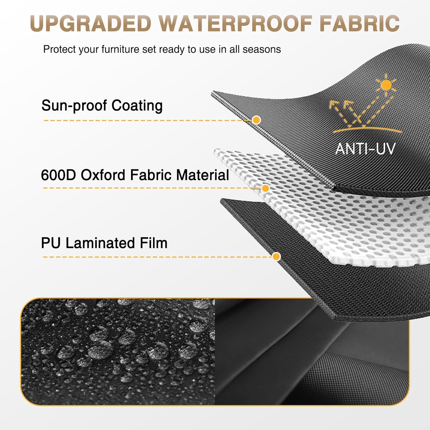 • ??All-Weather Durability??Crafted with UV-resistant resin wicker and rustproof steel framing, this outdoor patio furniture set thrives in sun, rain, or snow. The weatherproof construction resists fading, cracking, and corrosion, ensuring long-lasting performance in any season. Wicker patio furniture cushion and pillow fabrics can shake off splashes or drizzle easily, but use the included waterproof cover during heavy rain or extended outdoor storage to maximize protection.