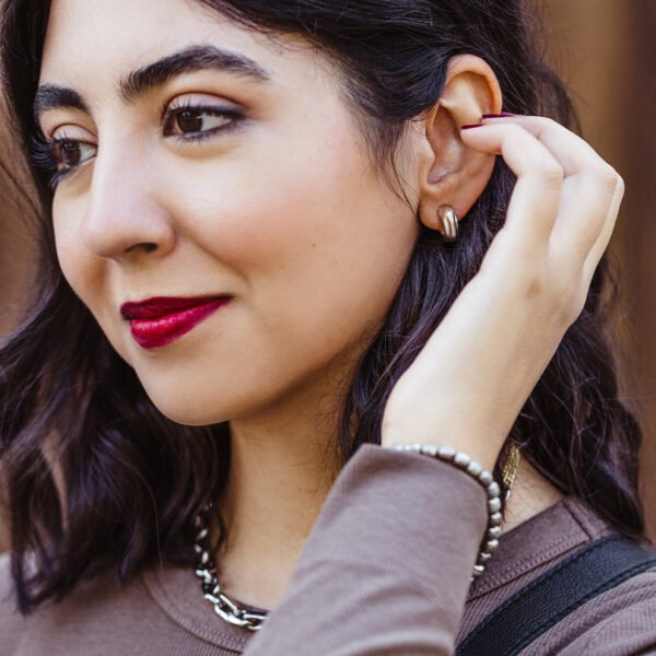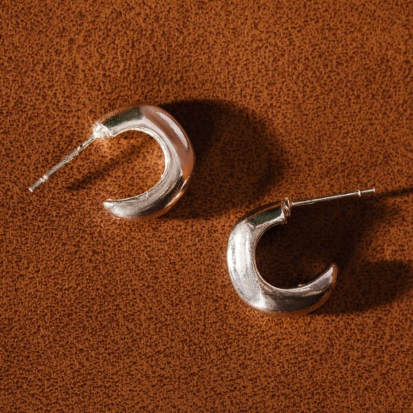 The Silver Crescent Huggie Earrings strike the perfect balance between a hoop and a stud. They feature a minimalist crescent design that hugs the ear with subtle elegance. Handcrafted in a sleek silver finish. these versatile earrings are lightweight yet eye-catching??ideal for adding a refined touch to both casual and formal looks.